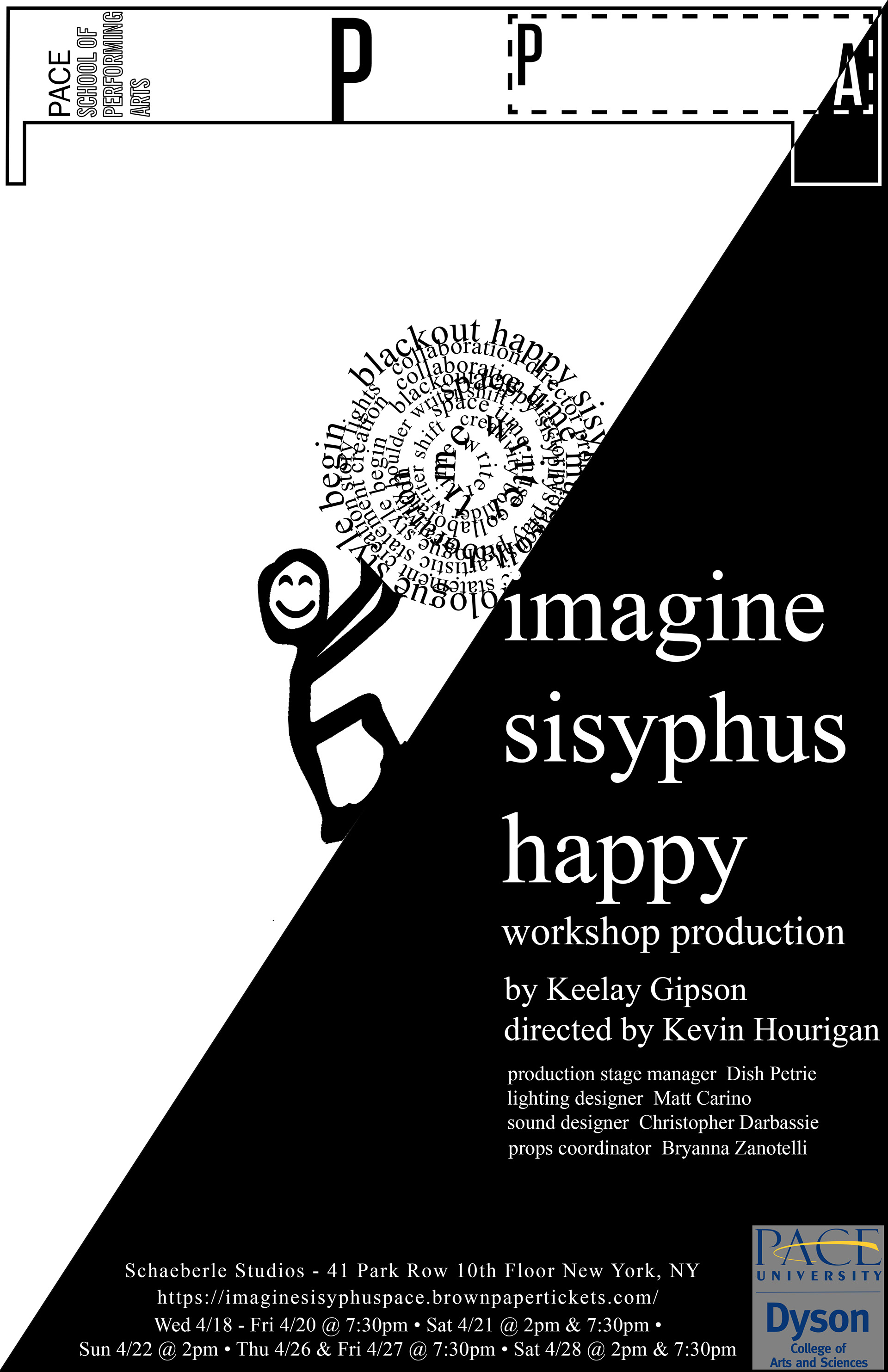 POSTER DESIGN FOR "IMAGINE SISYPHUS HAPPY" AT PACE UNIVERSITY